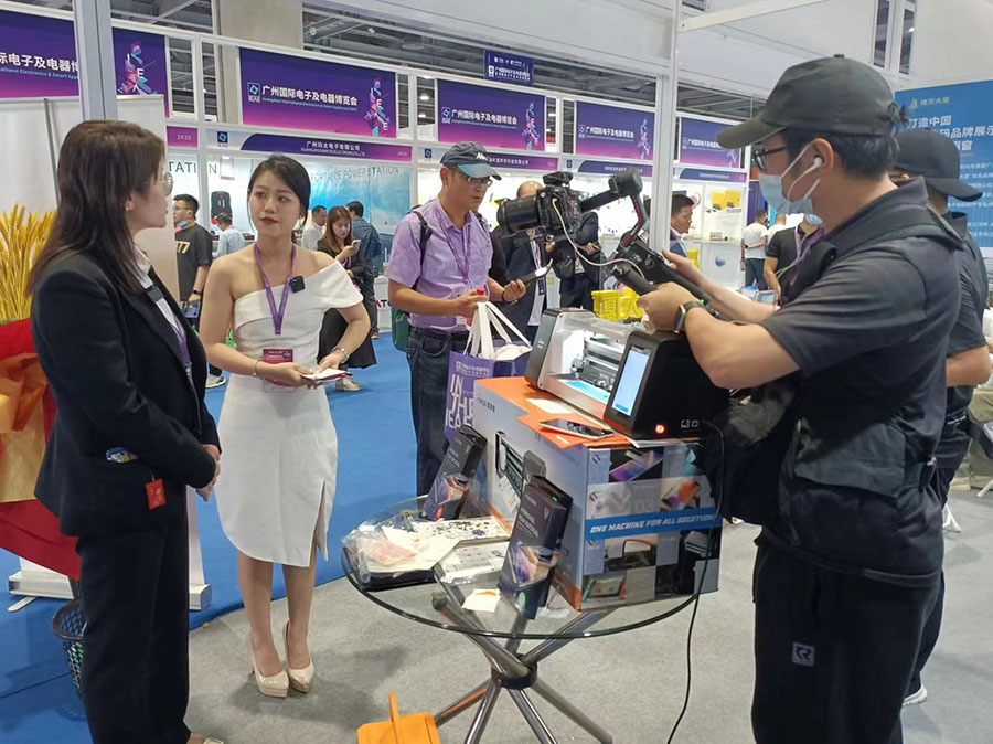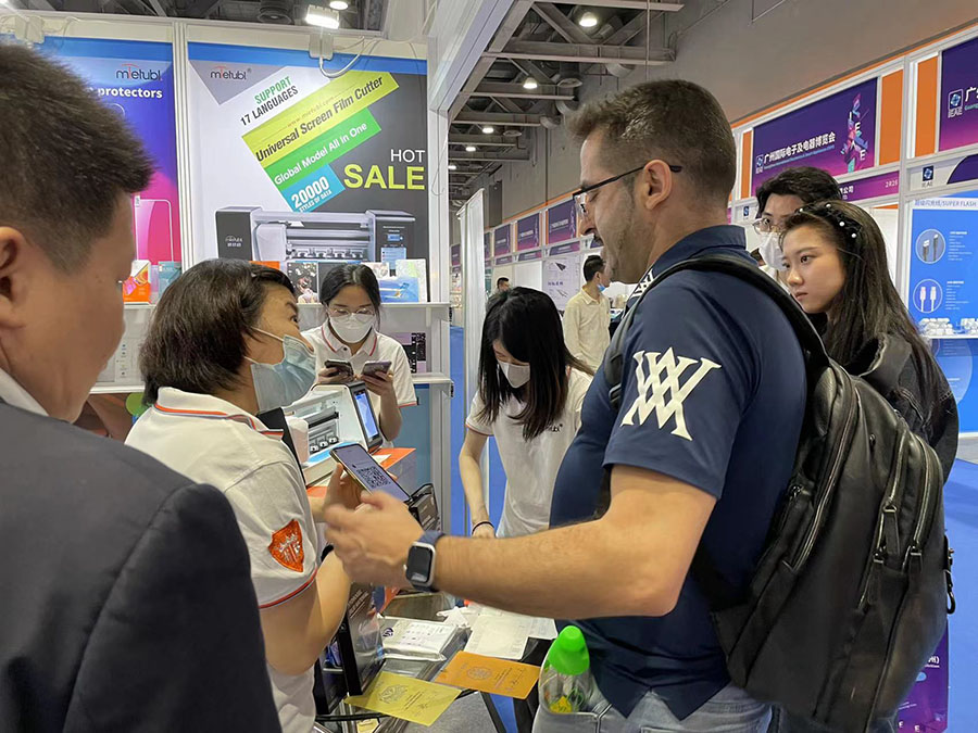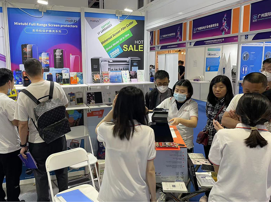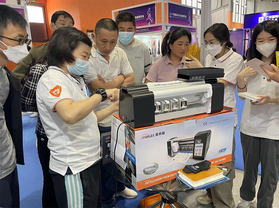 在超过10万爆品新品中,美特柏切膜机独具创新,摒弃传统的贴膜方式,采用“一机多用”的切膜技术,可根据不同的产品需求进行定制切割,实现前后膜的一体化贴合,完美地解决了行业内型号匹配的痛点。目前,美特柏切膜机已支持超过6600种设备型号,超过26000个图纸数据。覆盖手机、平板、笔记本等多种电子产品,成为展会的亮点之一。